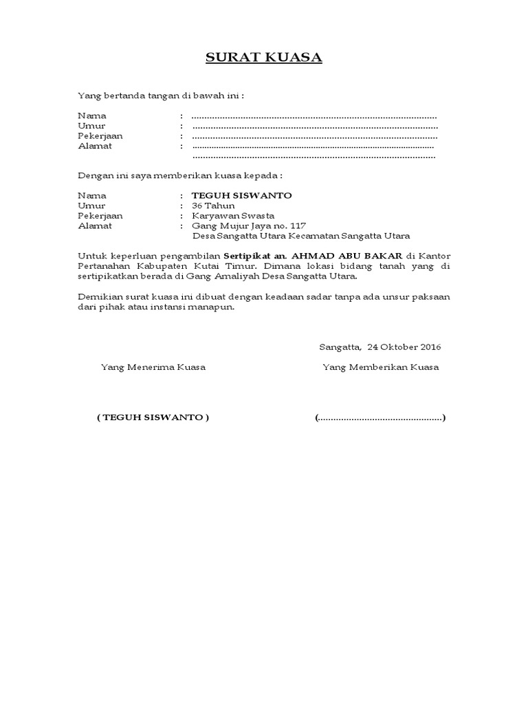 Savesave contoh surat kuasa pengurusan sertipikat tanah di. Contoh surat jual beli tanah dan surat kuasa. Contoh surat ijin penggunaan tanah bangunan paud paud jateng. Pendaftaran peralihan hak 13.surat keterangan pendaftaran 6. Surat kuasa adalah surat yang dibuat untuk memberikan wewenang kepada orang lain dari seseorang. Contoh surat kuasa dinas pengurusan website. 13 contoh surat kuasa yang baik dan benar untuk berbagai. Untuk melakukan pengurusan administrasi penyambungan baru listrik di pt. Supaya tidak bingung lagi, intip beberapa contoh surat kuasa tanah dalam artikel ini. Akan tetapi proses jual beli tersebut harus dilakukan sesuai dengan peraturan yang ada. Download as docx, pdf, txt or read online from scribd. Saya yang bertanda tangan di bawah ini Apabila di kemudian hari terdapat kesalahan atau sejenisya akan menjadi tanggung jawab saya sepenuhnya.